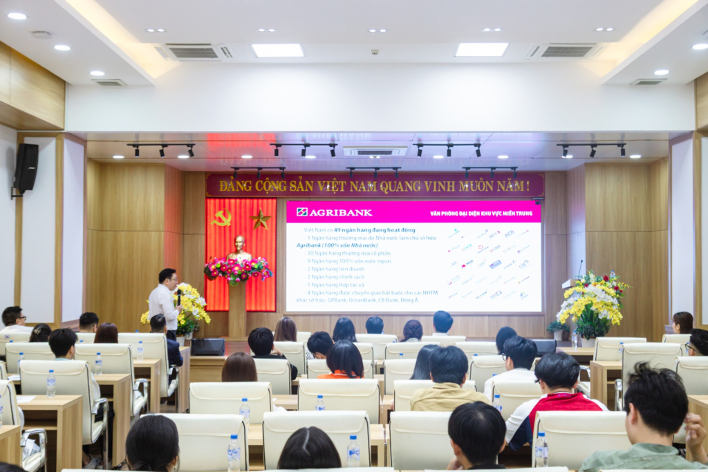 Tại Agribank, sinh viên được giới thiệu tổng quan về mô hình ngân hàng thương mại và vai trò của hệ thống ngân hàng trong việc điều tiết dòng vốn của nền kinh tế. Các chuyên gia của Agribank phân tích chức năng trung gian tài chính, hoạt động huy động – cho vay vốn, cũng như mối liên hệ giữa chính sách tiền tệ và hoạt động kinh doanh ngân hàng.