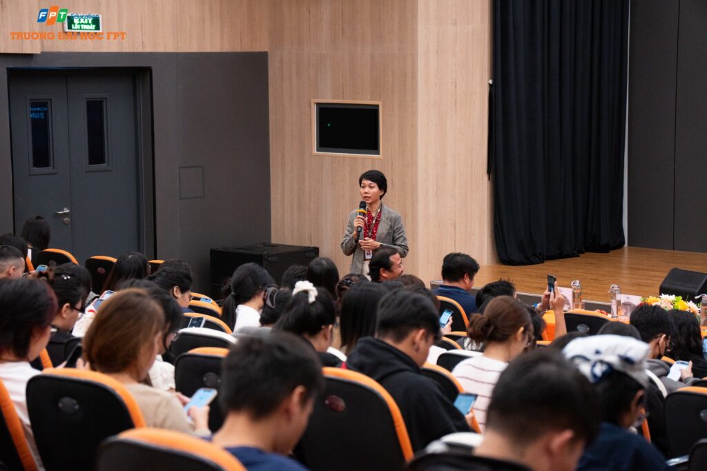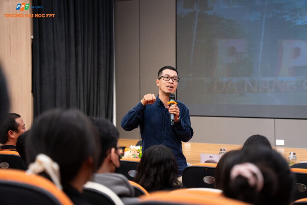 Không chỉ có vậy, buổi định hướng còn có sự tham gia của anh Lê Trọng Quang – Giám đốc Trung tâm Sản xuất, FPT Software, một đơn vị chiến lược trong chuỗi cung ứng SCM. Với nhiều năm kinh nghiệm trong quản lý và phát triển nguồn nhân lực, anh Quang đã chia sẻ những bí quyết quý báu giúp sinh viên hoàn thiện hồ sơ ứng tuyển (CV) một cách chỉnh chu, nâng cao kỹ năng phỏng vấn và học được nghệ thuật ghi dấu ấn cá nhân tích cực với nhà tuyển dụng. Đây chính là các kỹ năng mềm thiết yếu, góp phần quan trọng giúp các bạn thực tập sinh khẳng định mình trước các nhà quản lý doanh nghiệp.