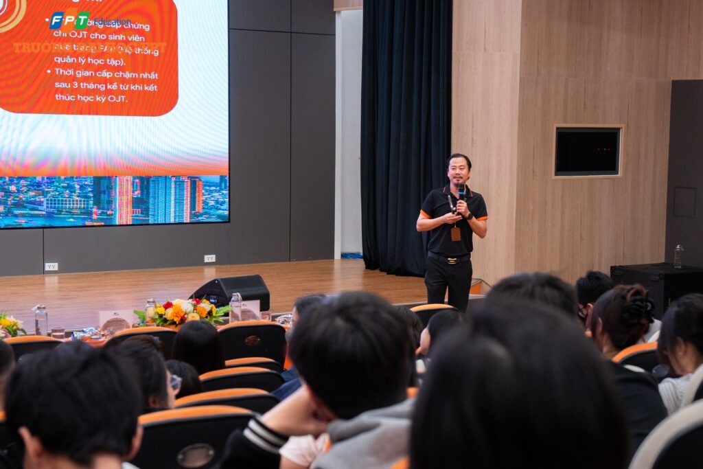 Chiều ngày 21/10/2025 tại Hội trường tầng 5 – Tòa nhà Alpha thuộc Đại học FPT Đà Nẵng, buổi Orientation OJT Spring 2026 đã chính thức diễn ra, đánh dấu một cột mốc quan trọng trên hành trình trải nghiệm thực tế tại doanh nghiệp dành cho sinh viên khối ngành Quản trị Kinh doanh. Sự kiện nhận được sự quan tâm lớn bởi không chỉ mở ra cơ hội thực tập hấp dẫn mà còn trang bị những kỹ năng và kiến thức thiết yếu, giúp các bạn sinh viên tự tin “ra khơi” bước vào môi trường làm việc chuyên nghiệp.