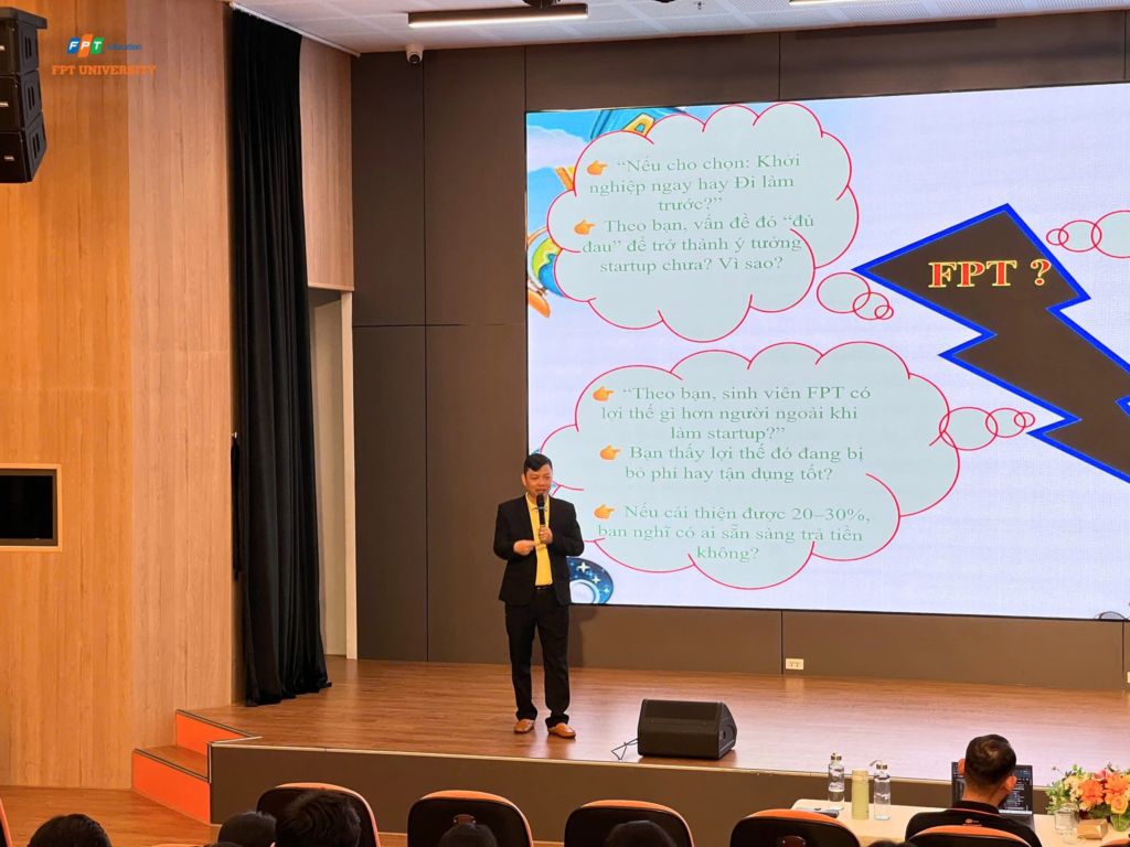 Chiều 24/01/2026, tại Trường Đại học FPT, Bộ môn Trải nghiệm Khởi nghiệp đã tổ chức seminar “Choosing a Startup Idea” dành cho sinh viên quan tâm đến con đường khởi nghiệp. Chương trình diễn ra trong bối cảnh khởi nghiệp đổi mới sáng tạo đang được xem là một trong những động lực quan trọng thúc đẩy tăng trưởng kinh tế và phát triển nguồn nhân lực trẻ, đặt ra yêu cầu ngày càng cao về năng lực tư duy thực tiễn, khả năng ứng dụng công nghệ và hiểu biết thị trường.