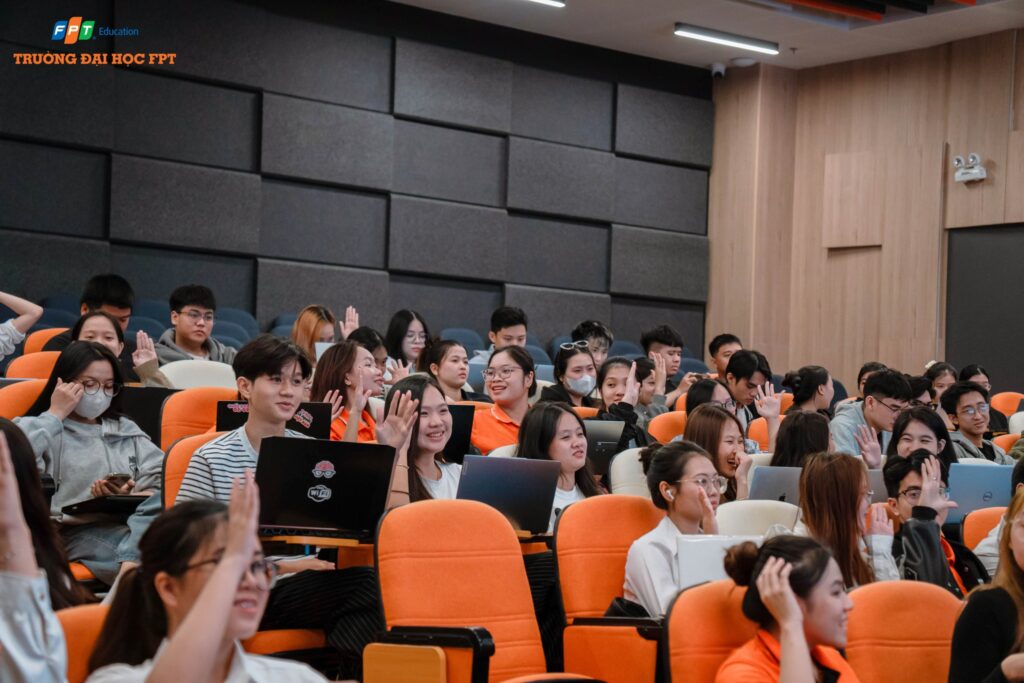Không khí buổi workshop vô cùng sôi nổi, với sự tham gia của đông đảo sinh viên đến từ nhiều chuyên ngành khác nhau. Các bạn không chỉ được lắng nghe chia sẻ từ chuyên gia mà còn được trực tiếp trải nghiệm quy trình tạo video bằng AI, từ ý tưởng đến sản phẩm hoàn chỉnh.
